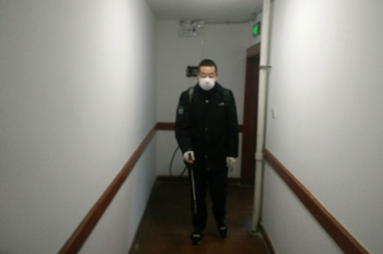 ▲  孙福军在为社区消毒